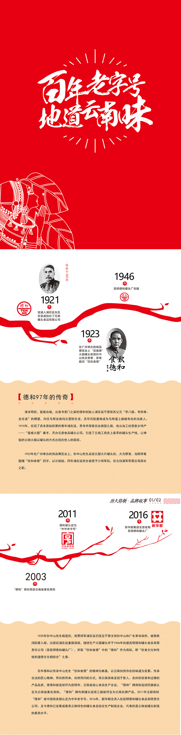 歷經(jīng)百年發(fā)展,德和現(xiàn)已形成集生產(chǎn)、加工、銷(xiāo)售為一體的綜合性食品企業(yè),主營(yíng)云腿午餐肉罐頭、云腿罐頭、生鮮食品、香腸臘肉、調(diào)味醬、家常菜、烘焙糕餅、休閑食品、節(jié)慶食品等近兩百種產(chǎn)品。德和憑借原料好、品質(zhì)優(yōu)、味道佳的產(chǎn)品質(zhì)量,贏得了眾多消費(fèi)者的喜愛(ài)和信賴,是云南家喻戶曉的知名品牌。
